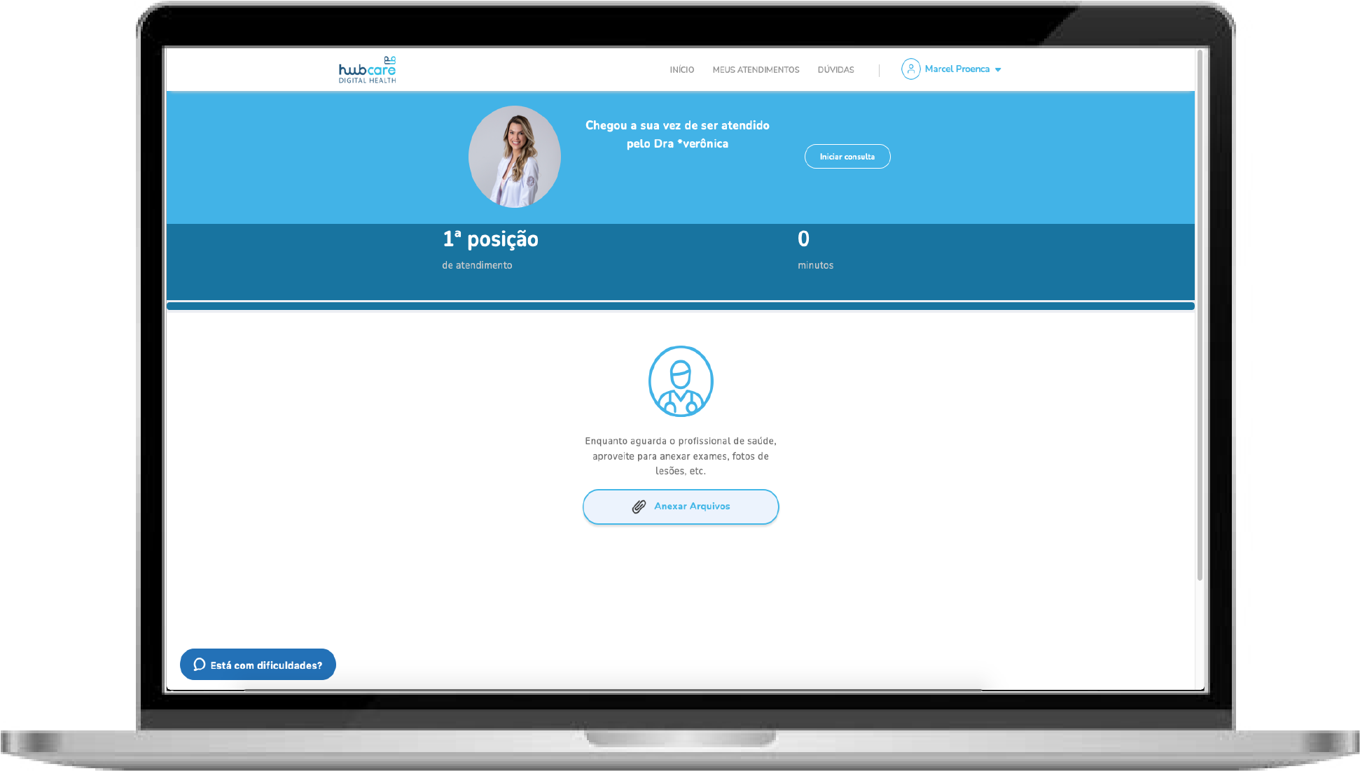 Assinando nosso plano o usuário pode acessar seu atendimento através de uma tela como ilustrado ao lado. Você pode acionar por um dos botões a maneira com que deseja ser atendido e de forma instantânea será direcionado para o profissional de saúde.